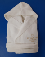 BATHROBE WITH A HOODIE FOR KIDSIN THE SAME QUALITY AS THE ADULT BATHROBES PLUS SLIPPERS.