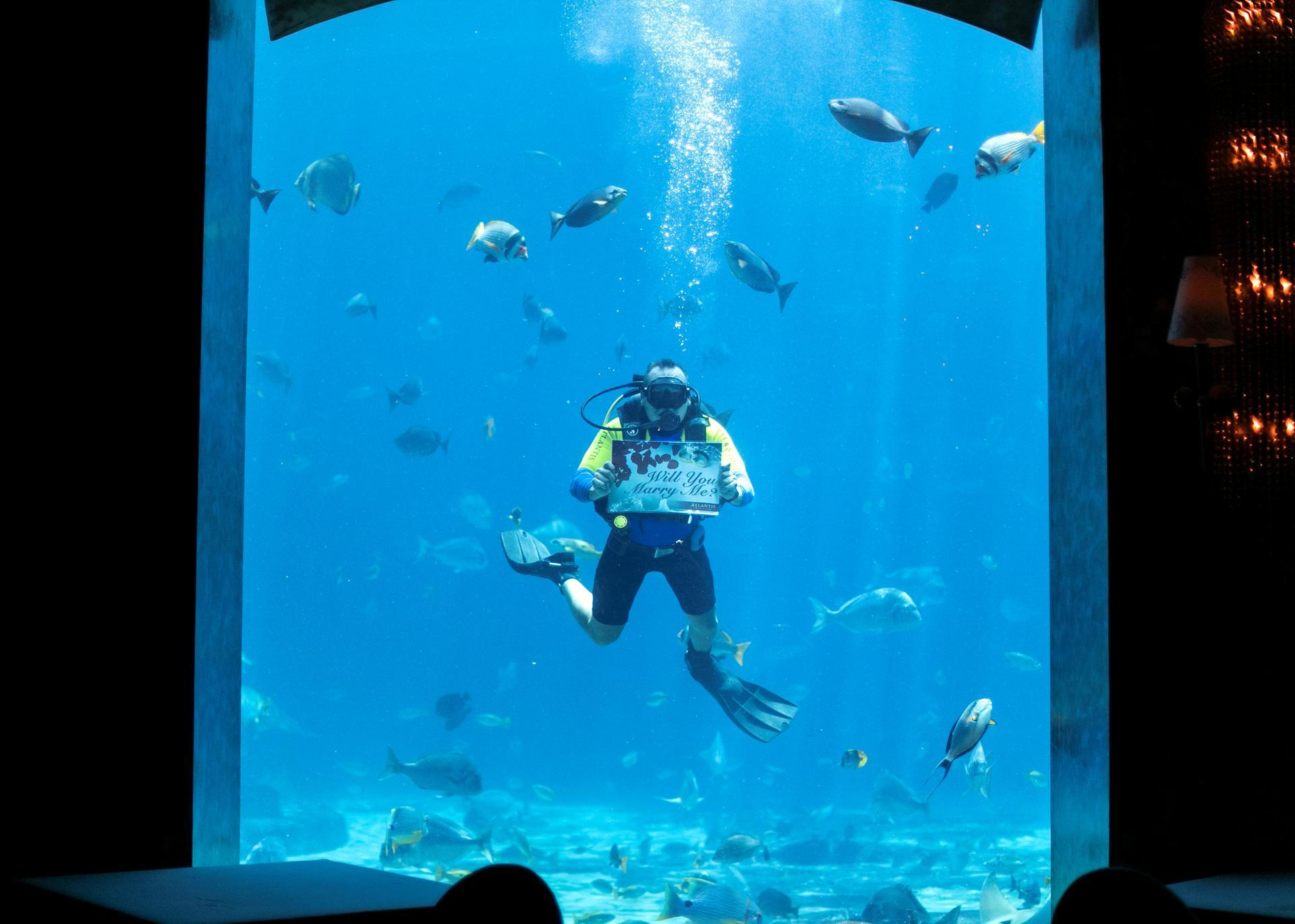 This is a great way to celebrate special occasions, as our diver will assist you in surprising your loved ones with a customized sign shown at the Ambassador Lagoon for 10 to 15 minutes.